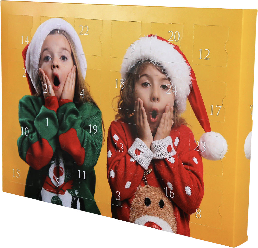 Ganz einfach: Erstellen Sie Ihren Kalender mit einem Titelfoto oder mit zusätzlichen 24 Türchenbildern.